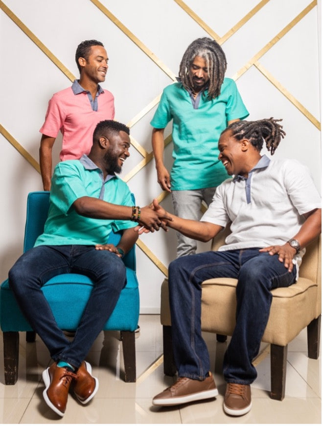 Half button front shirt, short sleeves, no pocket. No Painting. Available in white, coral and teal linen only, with karabela colar.