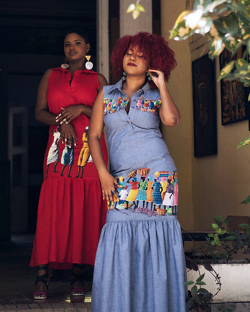 Chemisier top flounce hem painted dress, floor length (39in-44in, painted in two areas, no pockets, available in linen in all colors, Karabela or Syam, Small-3XL