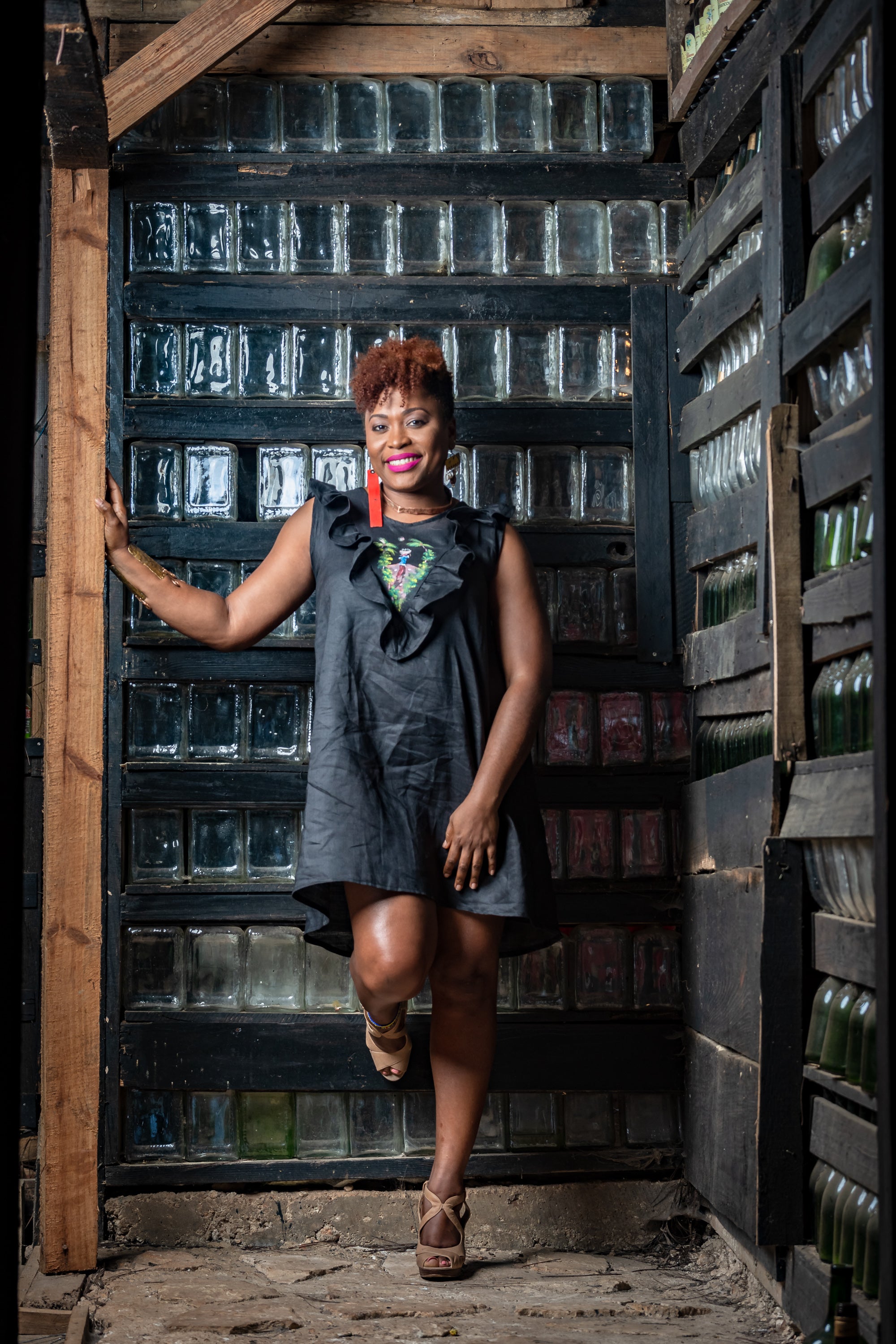 V- neck ruffled dress, above knee length, longer in the back, no pockets, available in linen in all colors, Karabela or Syam, Small-3XL